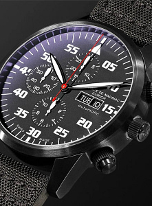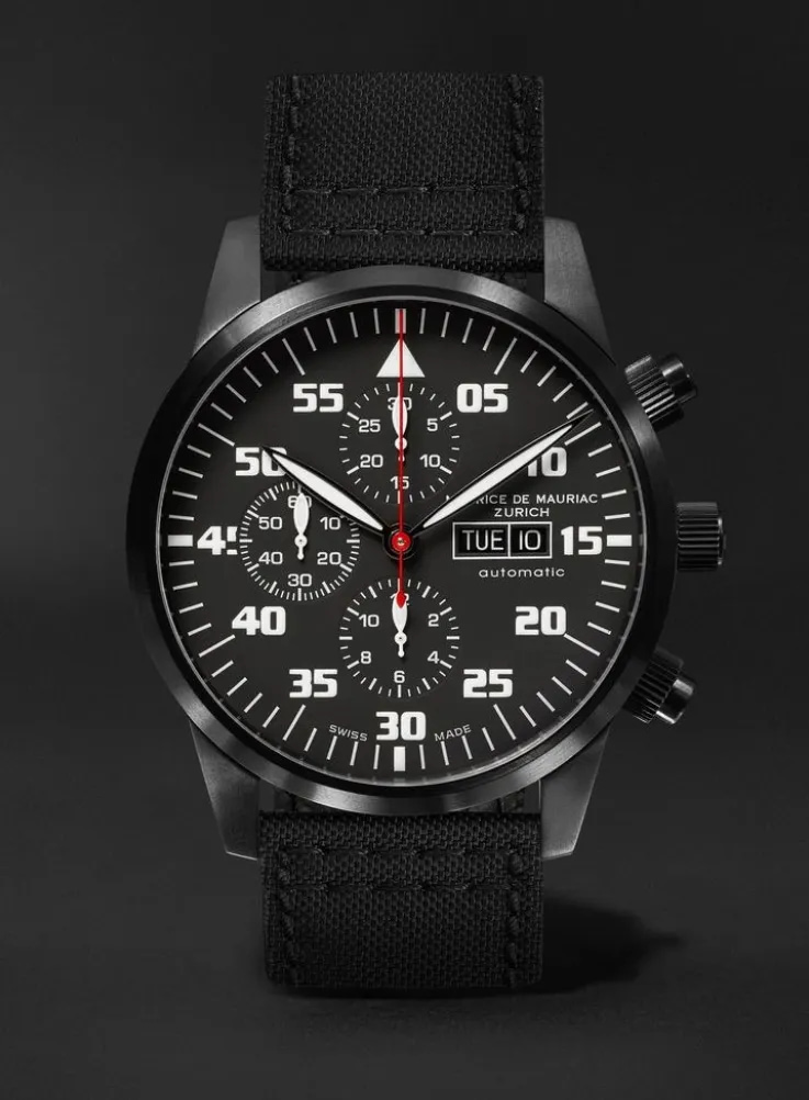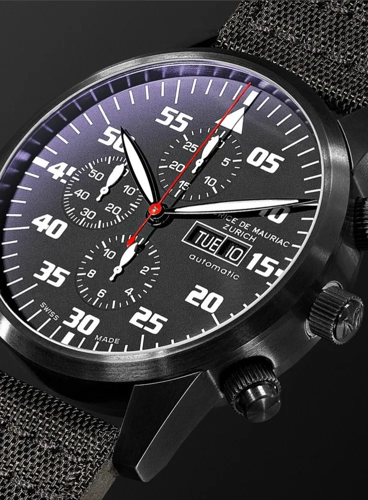每款 Maurice de Mauriac x MiGFlug Pilot 计时码表均由 瑞士 ETA 7750 自动精密机芯,久经考验的瑞士自动计时机芯,也被欧米茄、百年灵和万国等知名品牌采用 并精心打造,以体现您的喷气式飞机体验的速度和刺激。