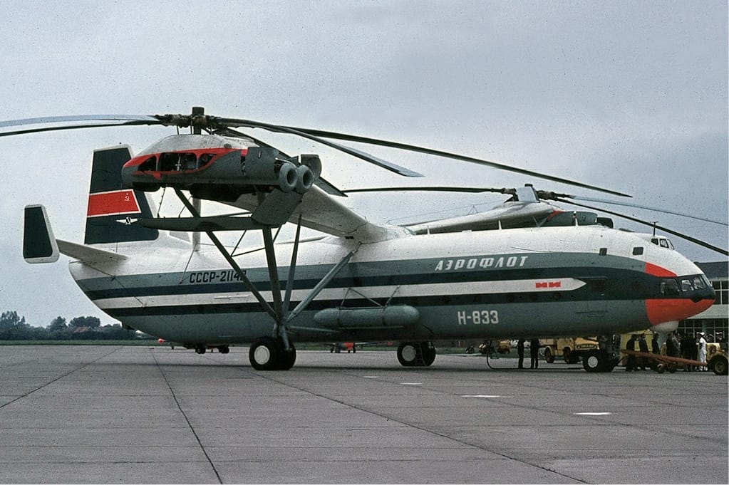 Aeroflot Mil V-12 – Western observers could only guess the purpose of this giant helicopter. By the 1970s the Soviets did not have a purpose for that monster (other than impressing crowds).