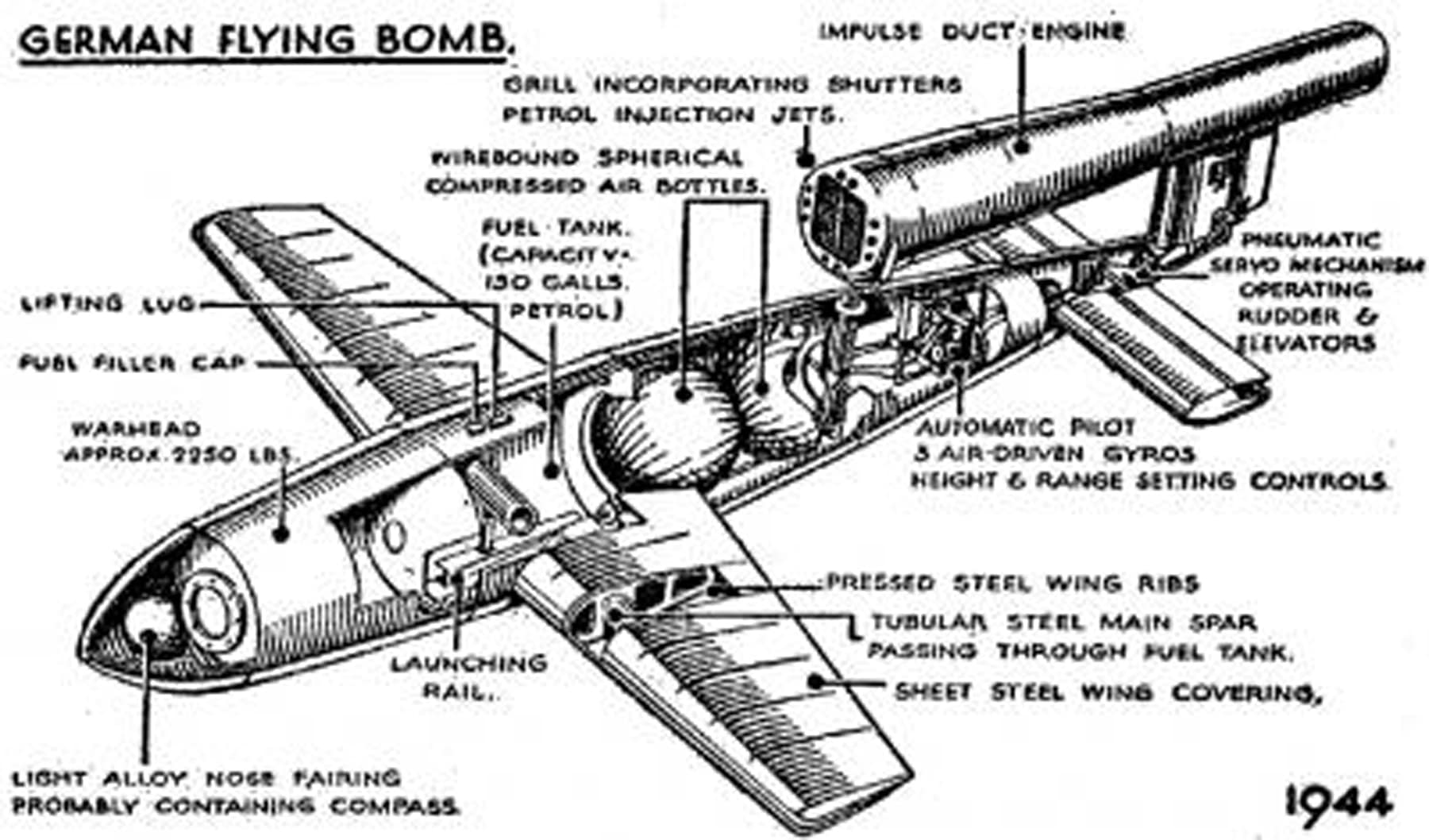The V1 Flying bomb was the worlds first cruise missile. An unmanned gyro guided plane that delivered a tonne of high